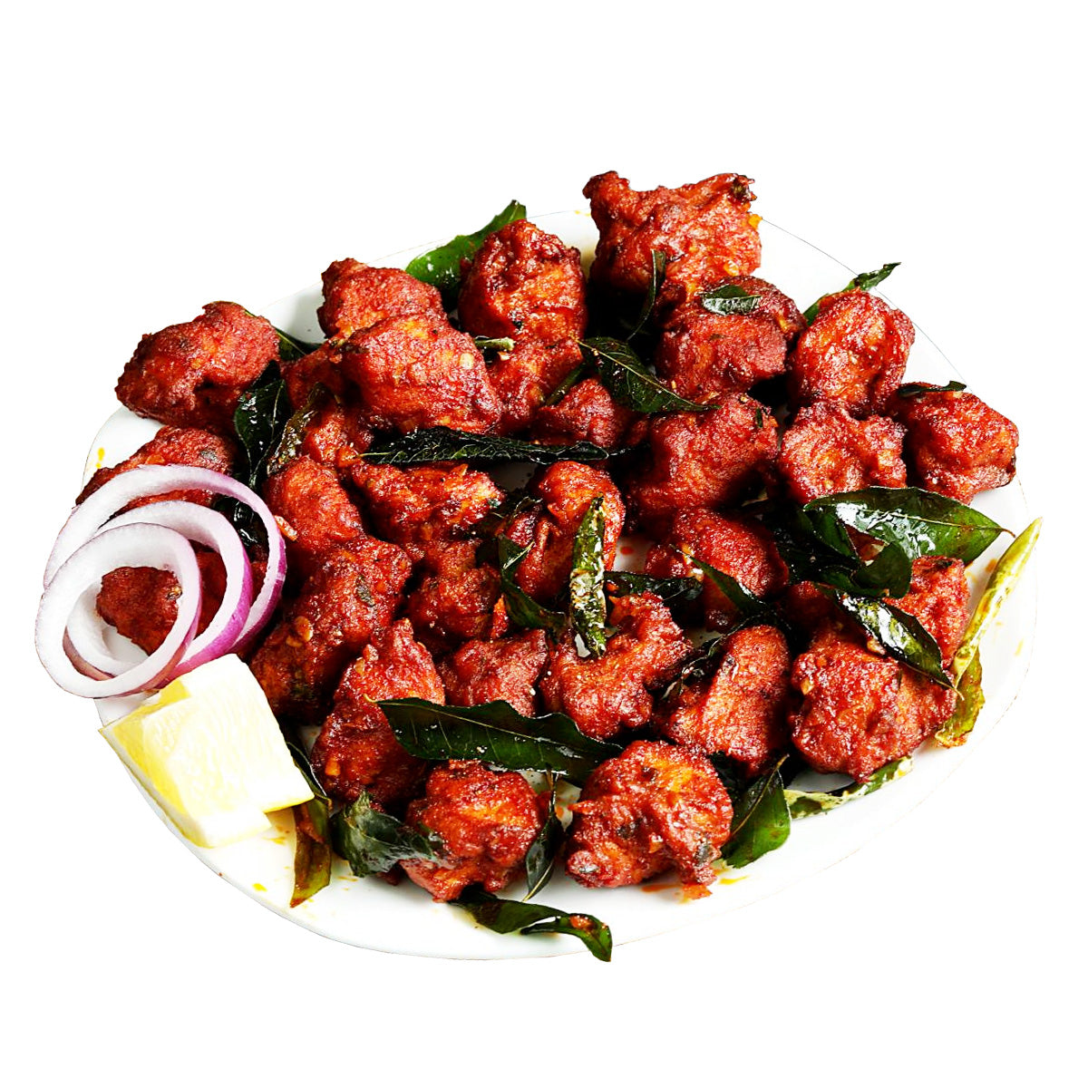 Chicken 65 (Dry) features crispy fried chicken pieces tossed in a robust blend of South Indian spices, offering an intense, flavorful bite without the saucy coating. This drier version highlights the perfect balance of heat and texture, delivering a satisfying and bold appetizer for spice enthusiasts.